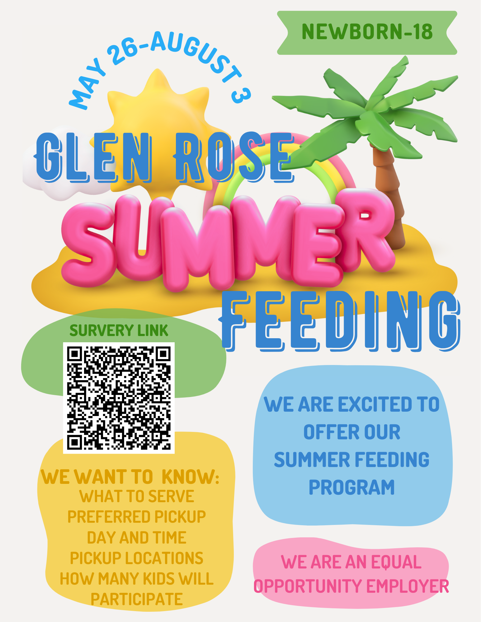 We are excited to offer our Glen Rose Summer Feeding Program through the Seamless Summer Option (SSO). This is a Community-Based Summer Food Program and is open to anyone from newborn through 18 ye...