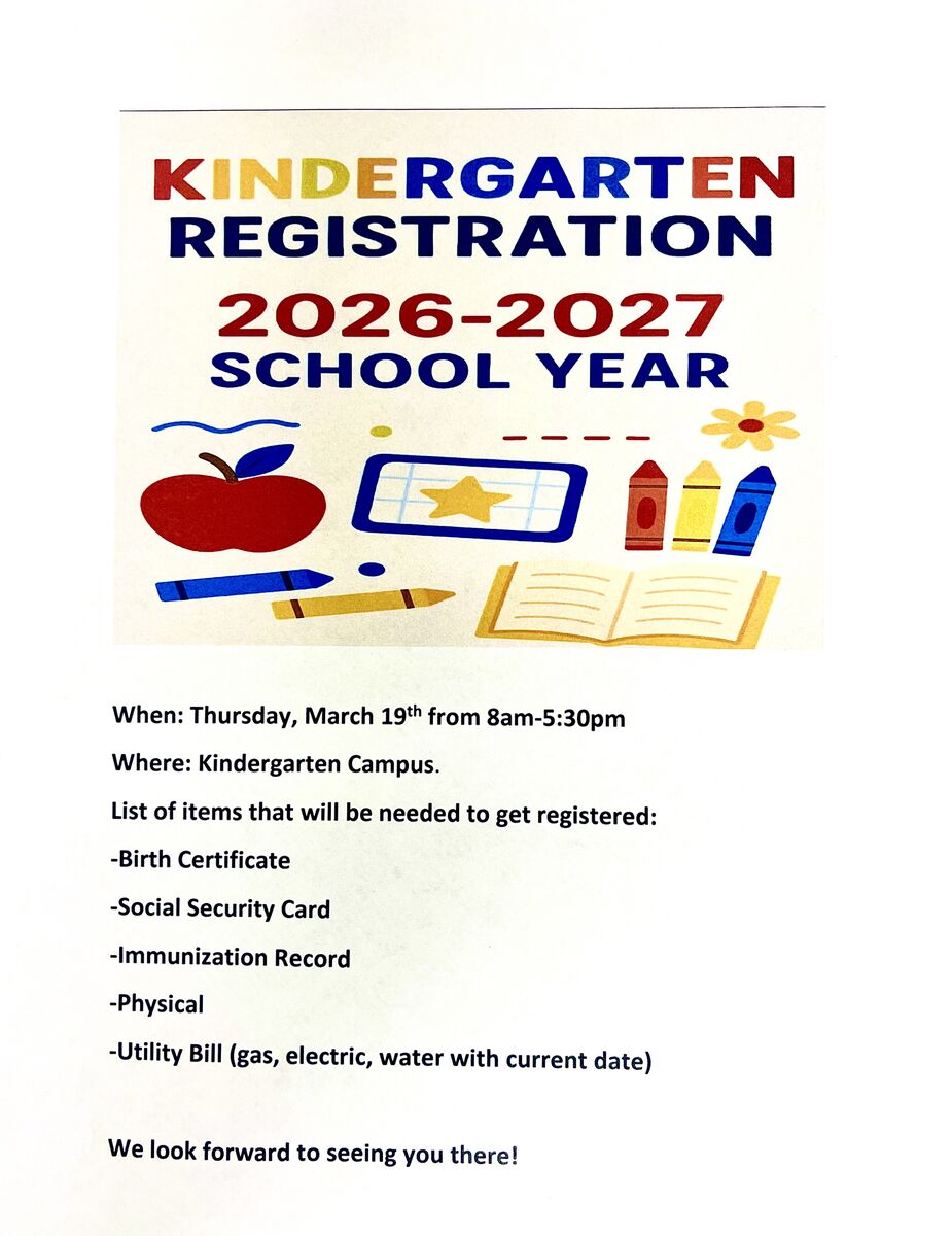 Kindergarten RegistrationThursday, March 19th 8am-5:30pm @ the Kindergarten Campus.
