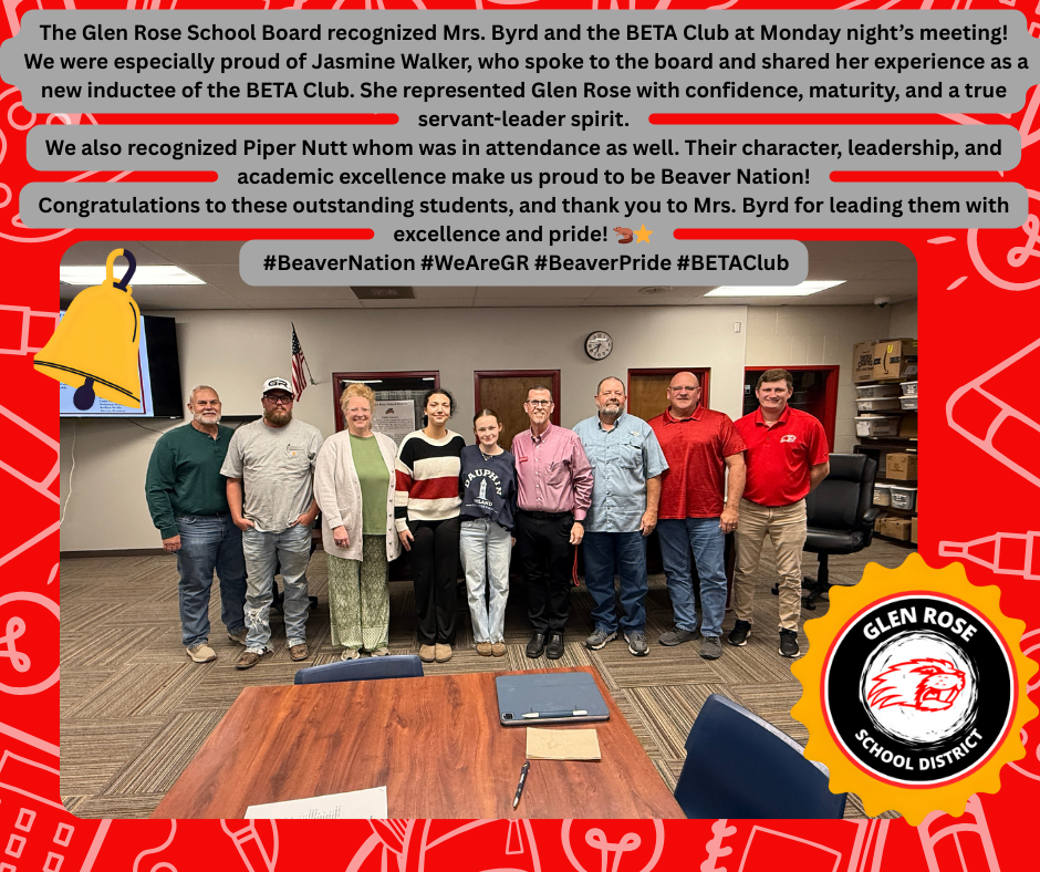 The Glen Rose School Board recognized Mrs. Byrd and the BETA Club at