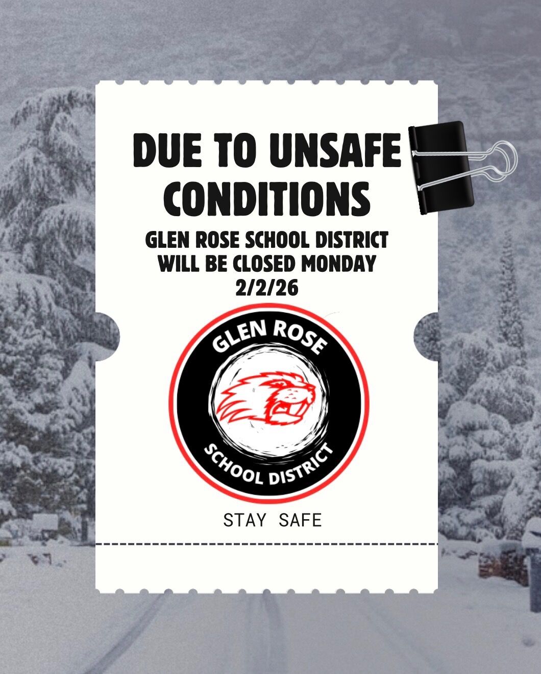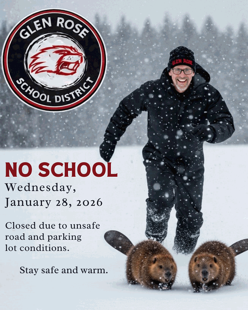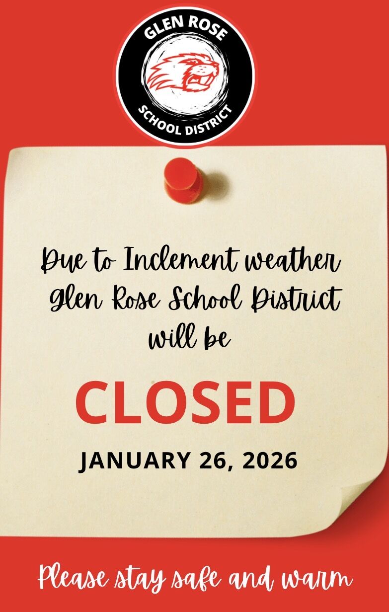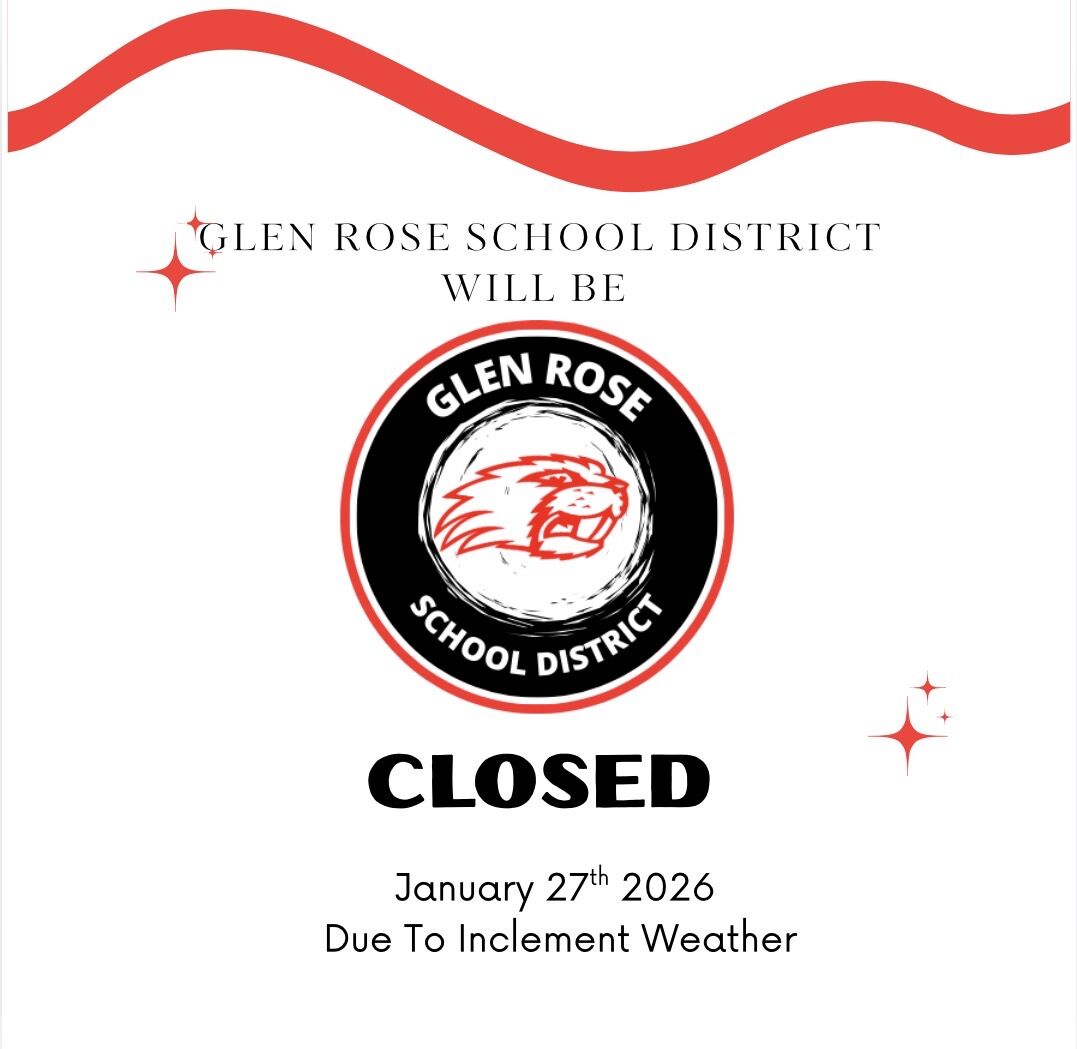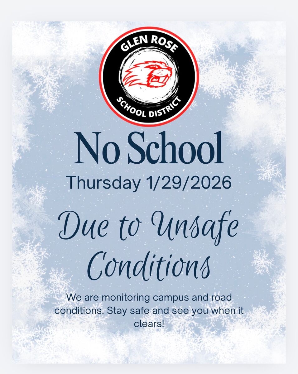 Glen Rose School District will be closed on Thursday, January 29, 2026 due to unsafe road conditions.