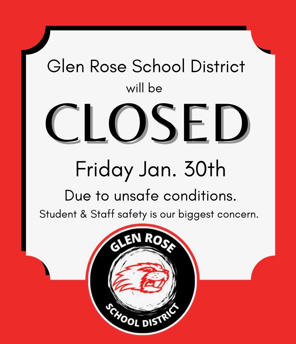 Glen Rose School District will be closed on Friday, January 30, 2026 due to unsafe road conditions.